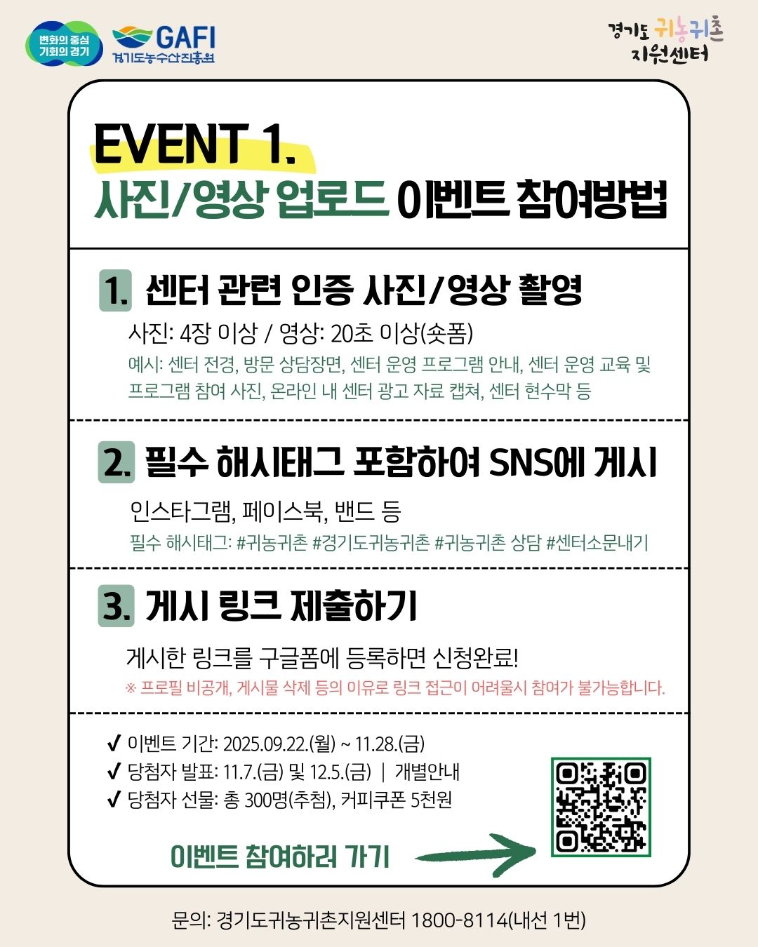 - 필수해시태그: #귀농귀촌, #경기도귀농귀촌 #귀농귀촌상담 #센터소문내기